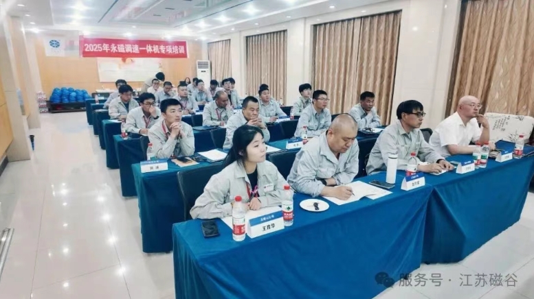 江蘇磁谷成功承辦某央企環(huán)保公司《永磁調(diào)速一體機(jī)工廠生產(chǎn)線實操培訓(xùn)》,為期3天的深度技術(shù)研修于6月20日圓滿收官。本次培訓(xùn)集結(jié)了該企業(yè)技術(shù)骨干20余人,通過"理論+實踐+研討"三維賦能模式,重點圍繞永磁調(diào)速一體機(jī)的技術(shù)原理、結(jié)構(gòu)組成、性能特點及應(yīng)用領(lǐng)域、操作規(guī)范、檢修維護(hù)及故障排查等核心內(nèi)容展開,培訓(xùn)內(nèi)容豐富、培訓(xùn)形式多樣,同時開展了實操技術(shù)比武和理論考核,保障了培訓(xùn)效果,為國產(chǎn)永磁裝備制造注入新動能。 培訓(xùn)亮點之前沿技術(shù)拓展視野 永磁調(diào)速一體機(jī)作為新型節(jié)能設(shè)備,能精準(zhǔn)調(diào)速匹配負(fù)載,實現(xiàn)節(jié)能減排、降本增效。公司專業(yè)講師深入講解,讓學(xué)員深入了解該領(lǐng)域前沿技術(shù),拓寬了技術(shù)視野。